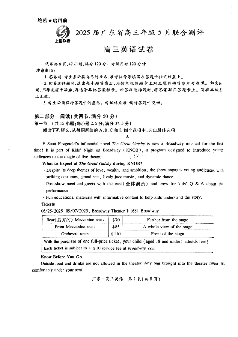 上进联考-2025届广东省高三5月联合测评-英语(含答案).pdf
