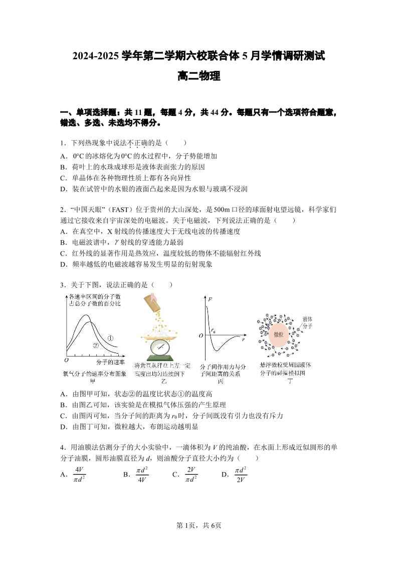 【物理试题】南京六校高二25下期中考.pdf