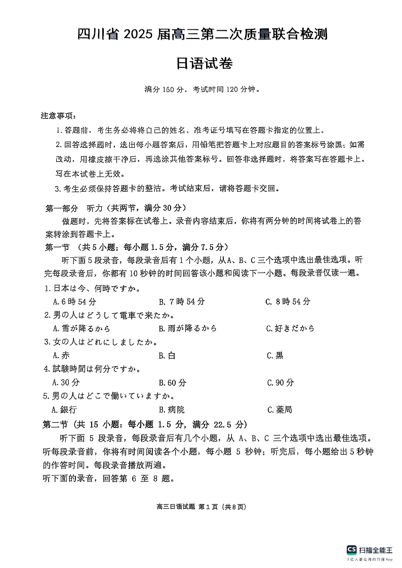 四川省2025届高三第二次教学质量联合测评 日语.pdf