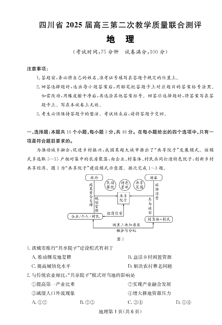 四川省2025届高三第二次教学质量联合测评 地理.pdf