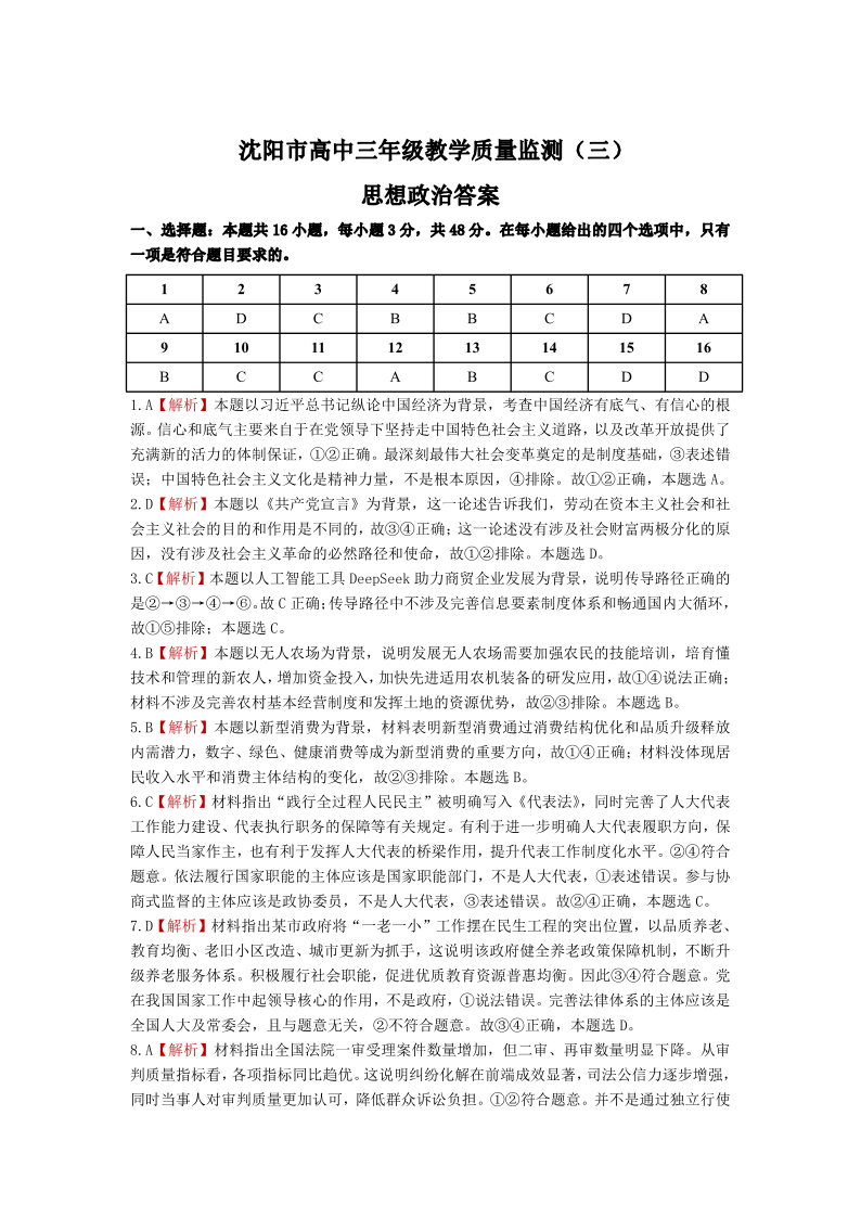 2025年沈阳市高考三模 政治答案.pdf