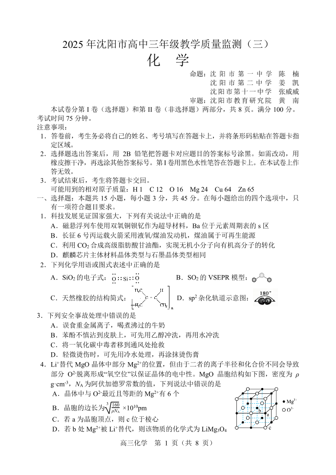 2025年沈阳市高考三模 化学.pdf