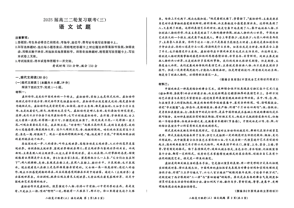 2025届百师联盟高三二轮复习联考(三)语文试题(含答案).pdf