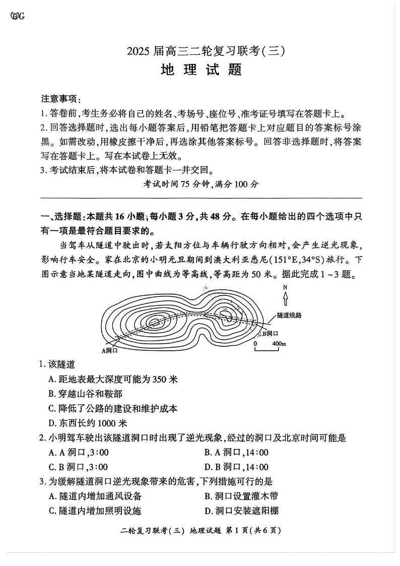 2025届百师联盟高三二轮复习联考(三)地理试题(含答案).pdf