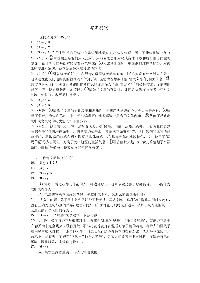 吉林市普通中学2025届高三年级第四次调研测试 语文答案.docx