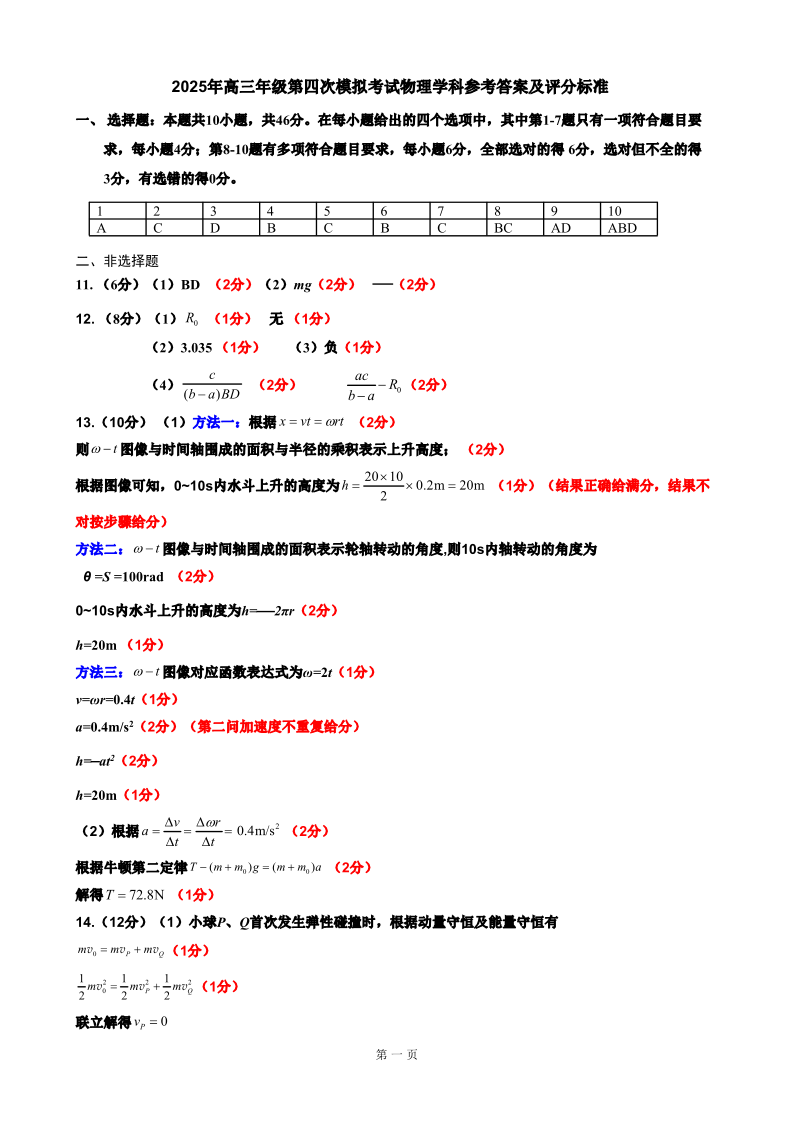 吉林市普通中学2025届高三年级第四次调研测试 物理答案.pdf
