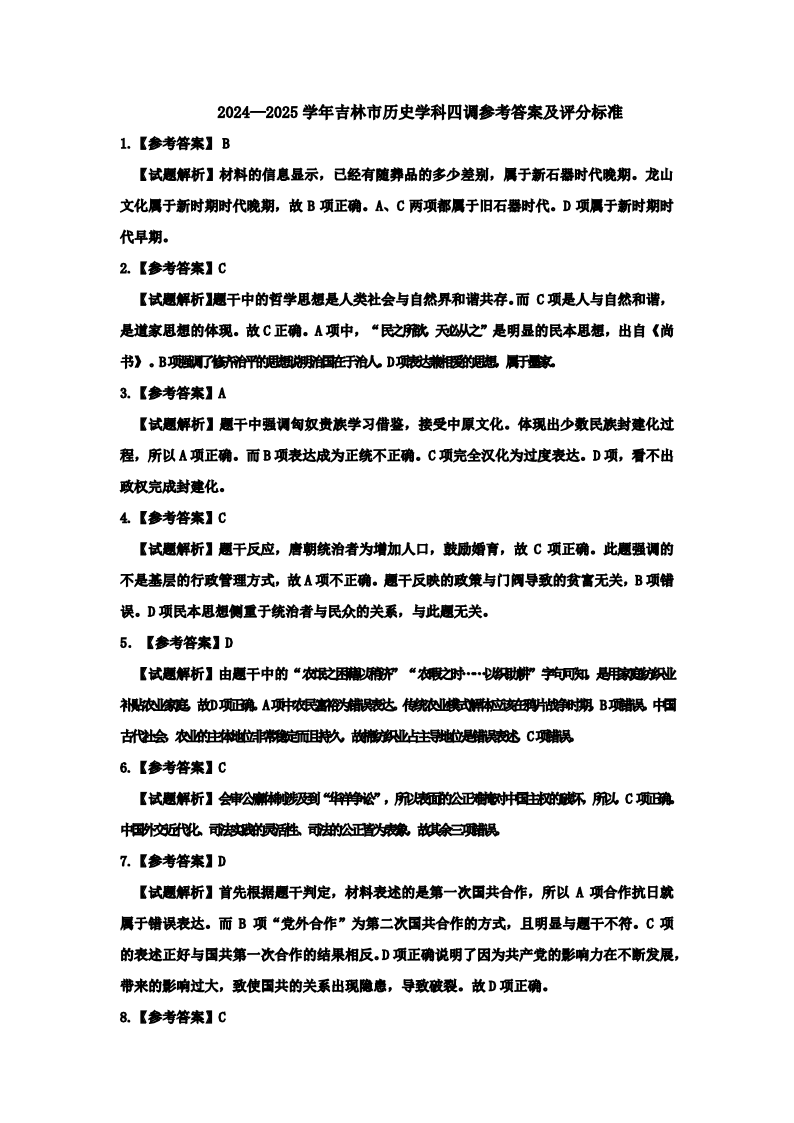 吉林市普通中学2025届高三年级第四次调研测试 历史答案.pdf