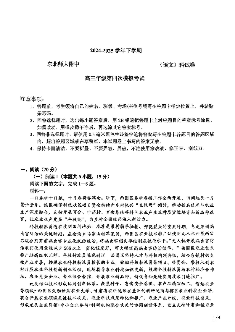 东北师大附中2025届高三年级第四次模拟考试 语文.pdf
