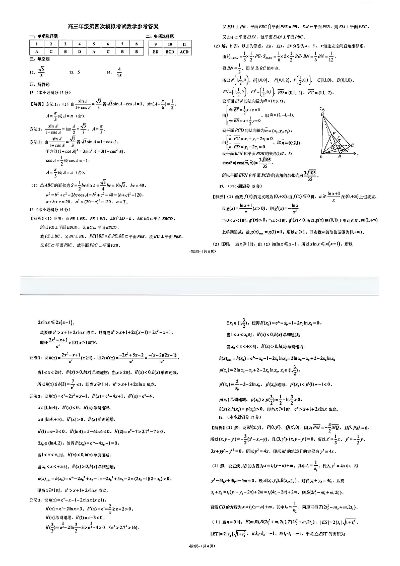 东北师大附中2025届高三年级第四次模拟考试 数学答案.pdf