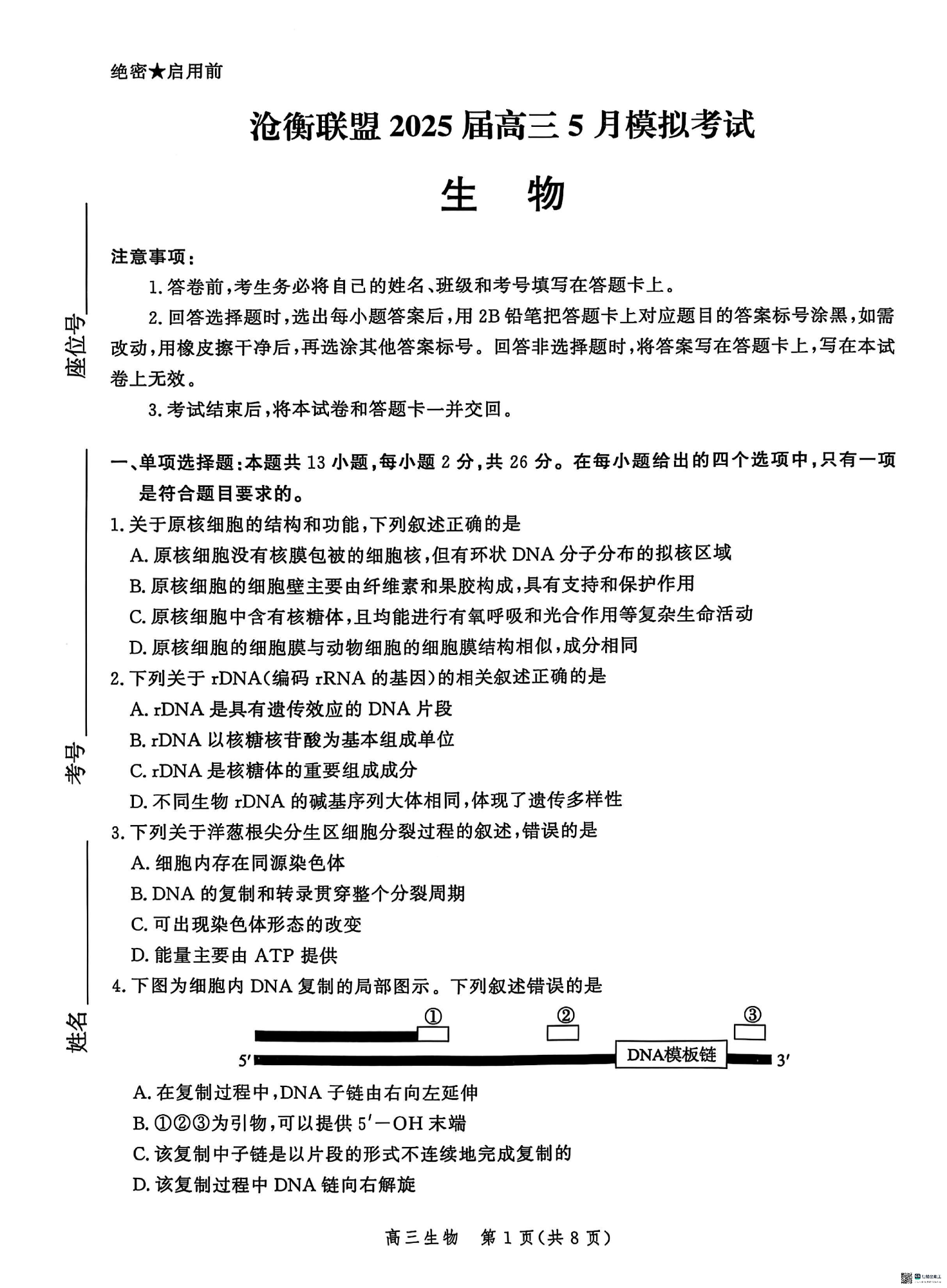 河北省沧衡联盟2025届高三5月模拟考试 生物(含答案).pdf