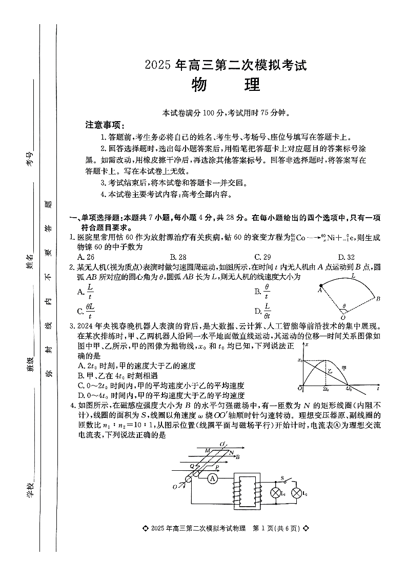保定市2025年高三第二次模拟考试 物理.pdf