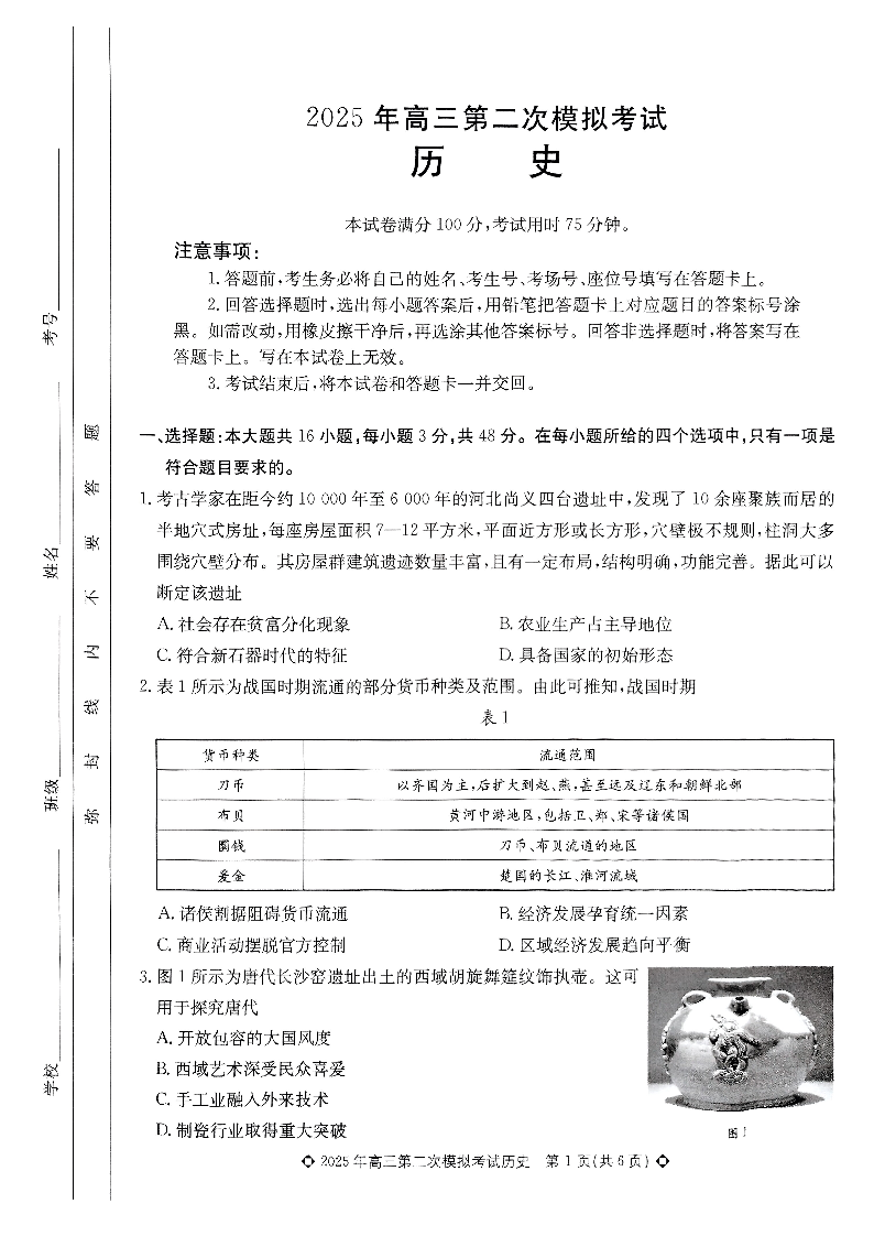 保定市2025年高三第二次模拟考试 历史.pdf