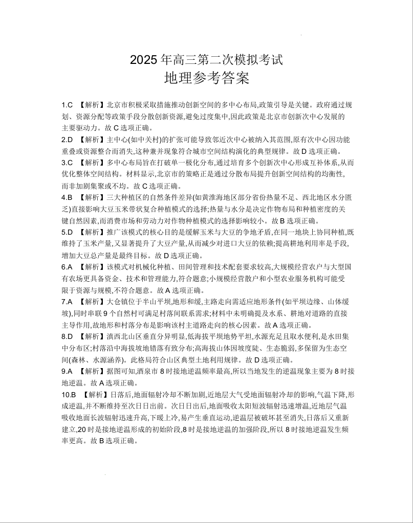 保定市2025年高三第二次模拟考试 地理答案.docx
