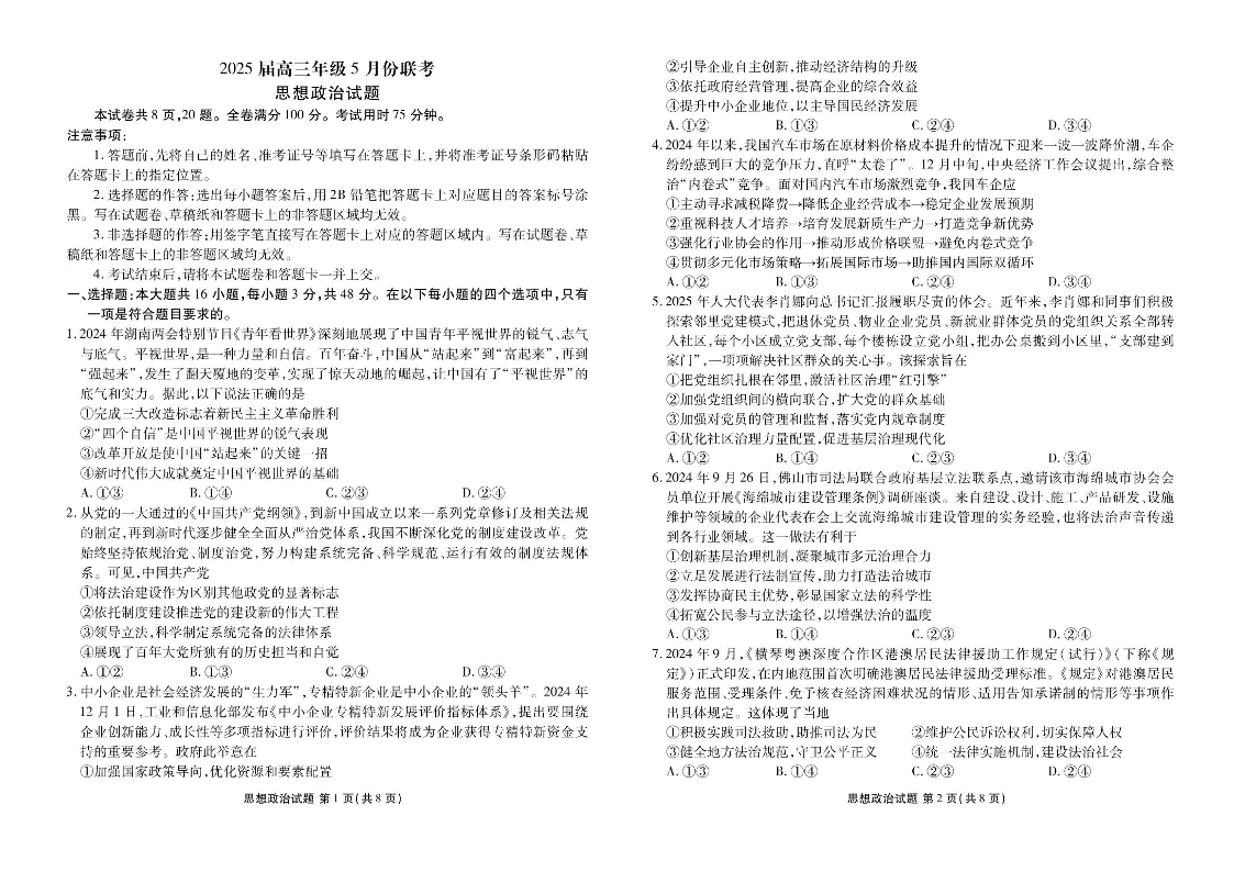 广东省衡水金卷2025届高三年级5月联考 政治试题(含答案).pdf
