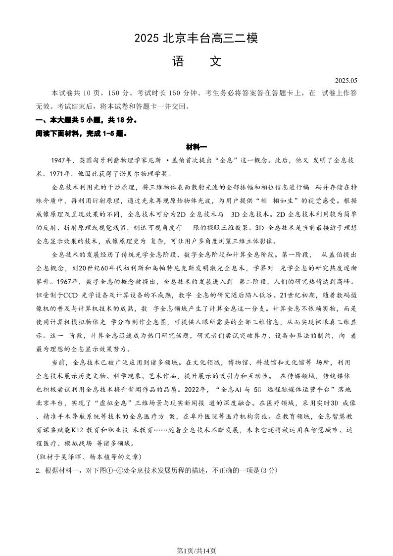2025北京丰台高三二模 语文(含答案).pdf