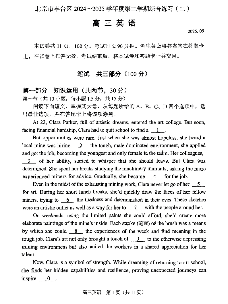 2025北京丰台高三二模 英语(含答案).pdf