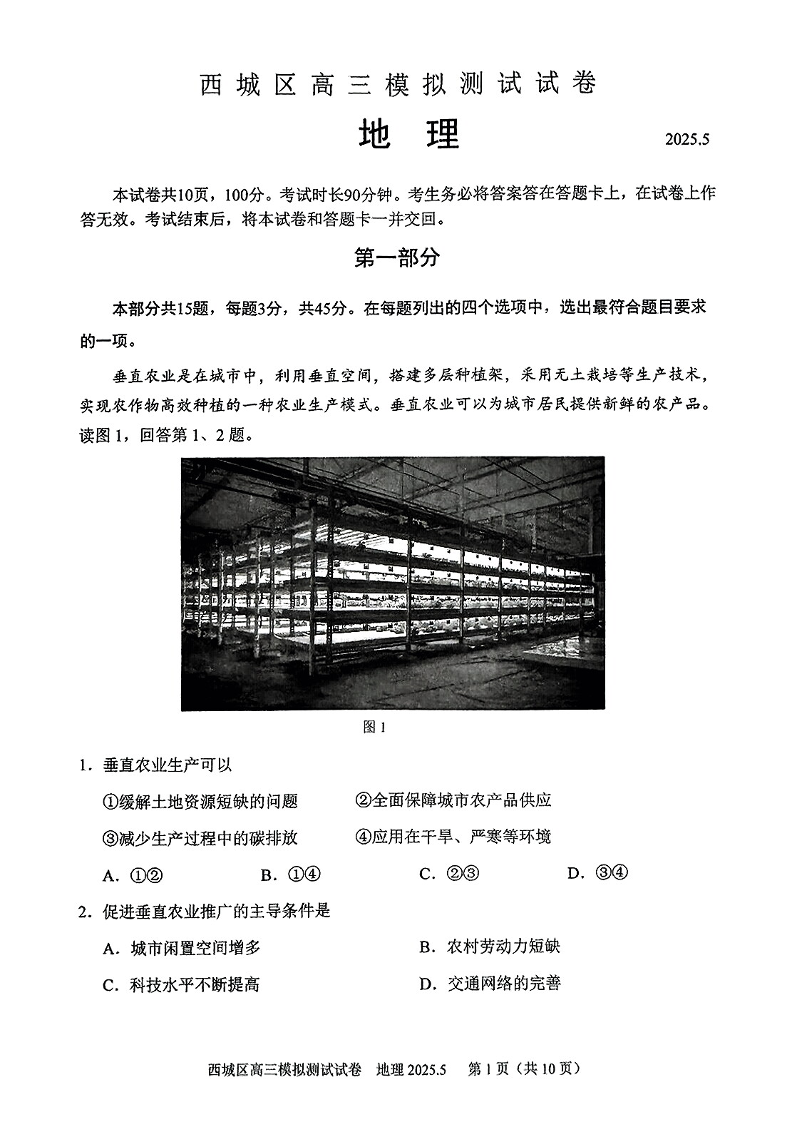 2025北京西城高三二模 地理(含答案).pdf