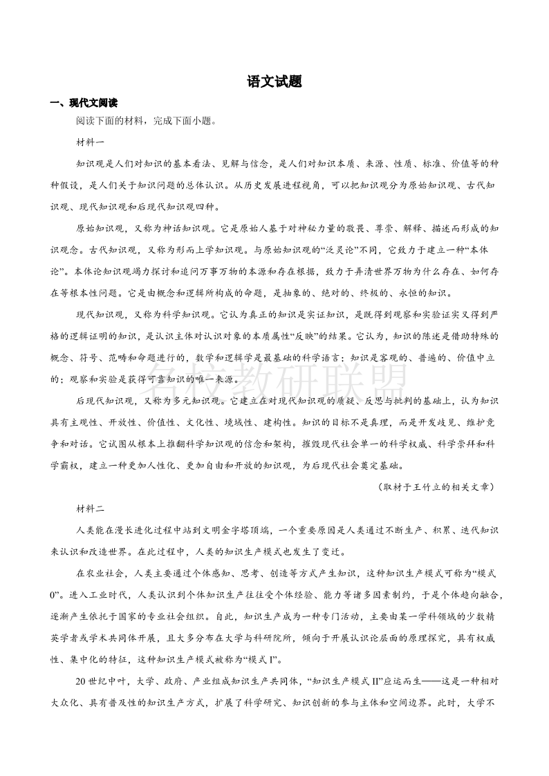 辽宁省实验中学2024-2025学年高一下学期4月阶段测试 语文(含答案).pdf