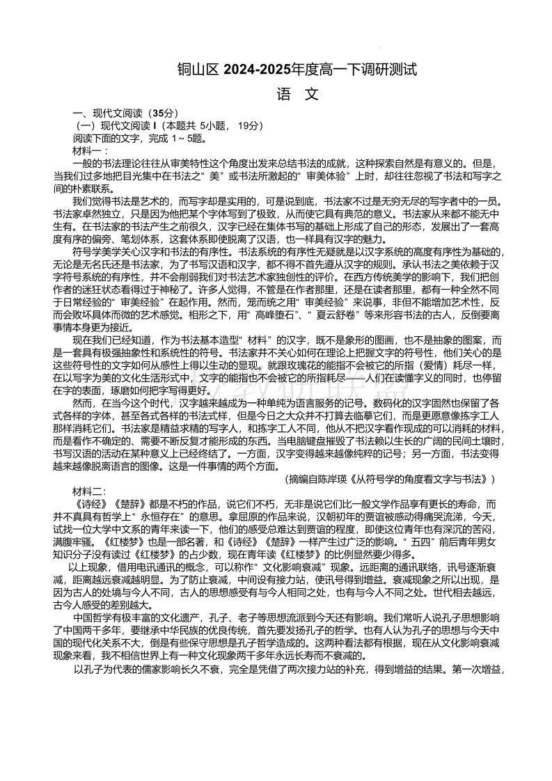 江苏省徐州市铜山区2024-2025学年高一下学期4月期中考试 语文(含答案).pdf