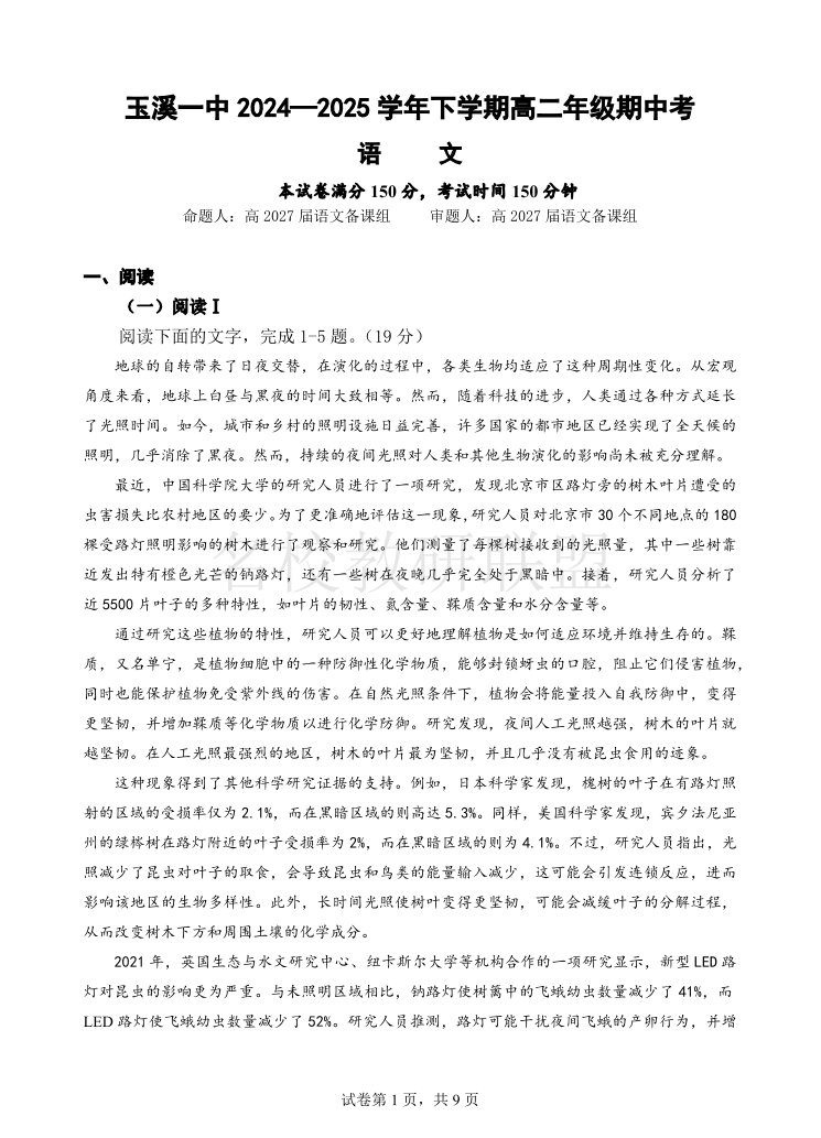 玉溪一中2024-2025学年高二下学期期中考 语文.pdf