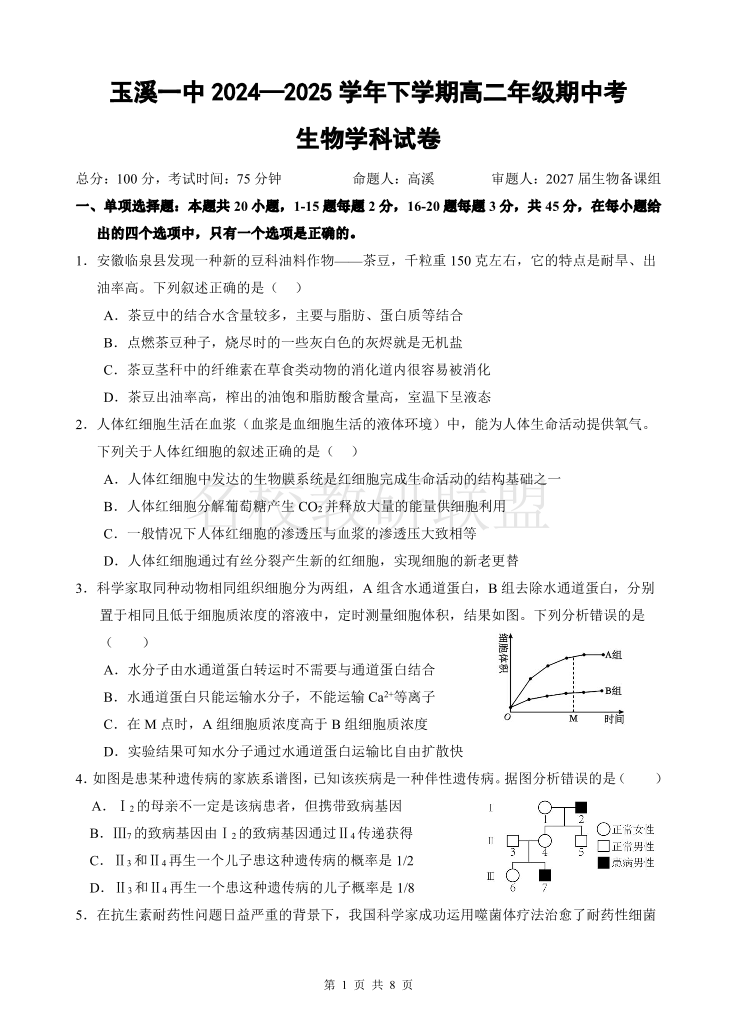 玉溪一中2024-2025学年高二下学期期中考 生物.pdf