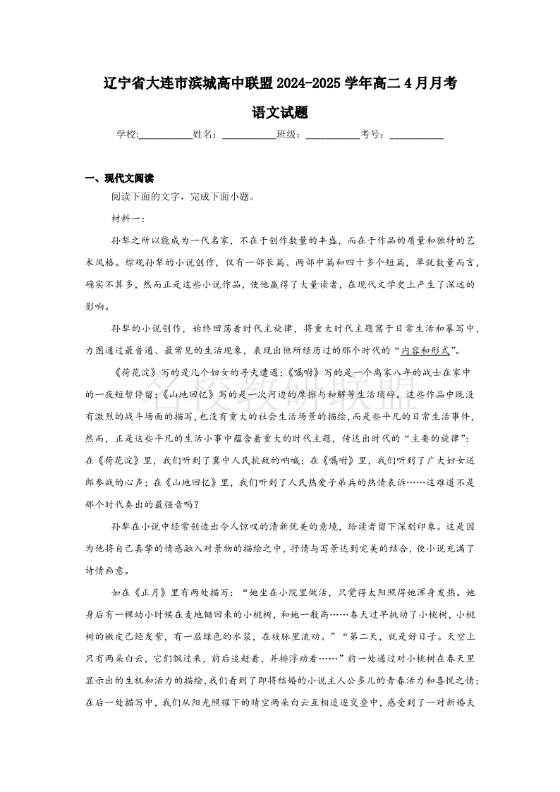 辽宁省大连市滨城高中联盟2024-2025学年高二下学期4月考试 语文试卷(含答案).pdf