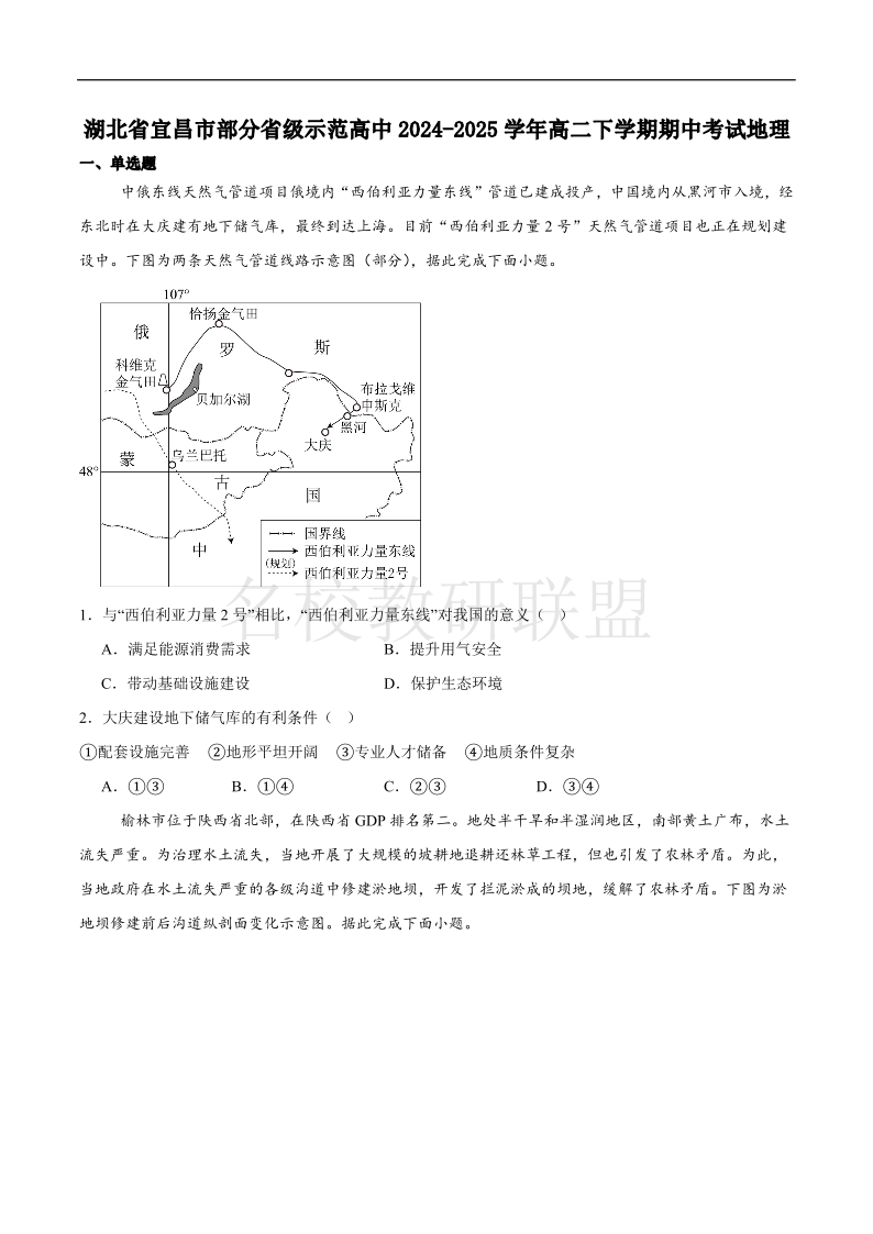 宜昌市部分省级示范高中2025春季学期高二年级期中考试 地理试卷(含答案).pdf
