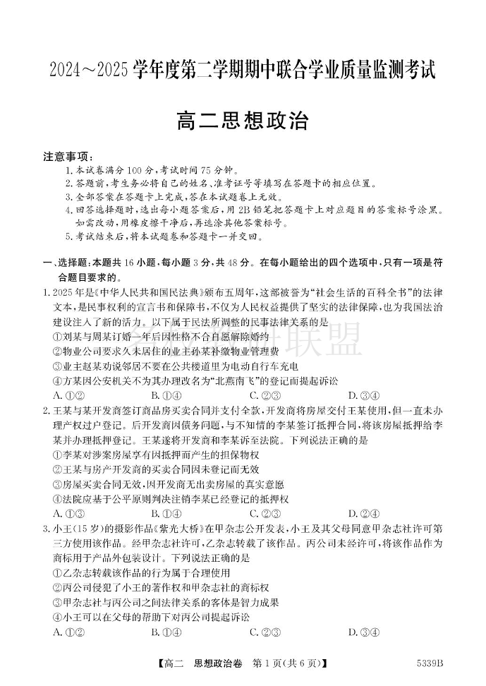 广东省清远市三校2024-2025学年高二下学期期中联考试题 政治试题(含答案).pdf