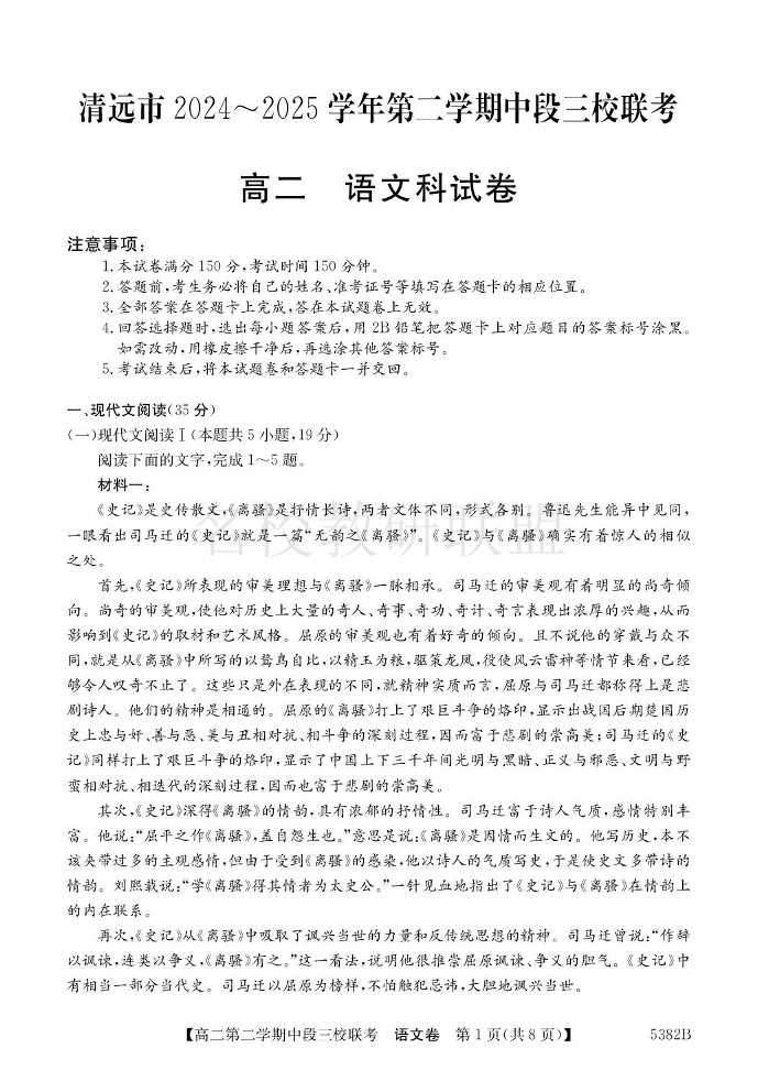 广东省清远市三校2024-2025学年高二下学期期中联考试题 语文试题(含答案).pdf