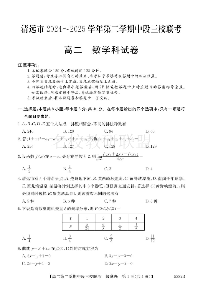 广东省清远市三校2024-2025学年高二下学期期中联考试题 数学试题(含答案).pdf