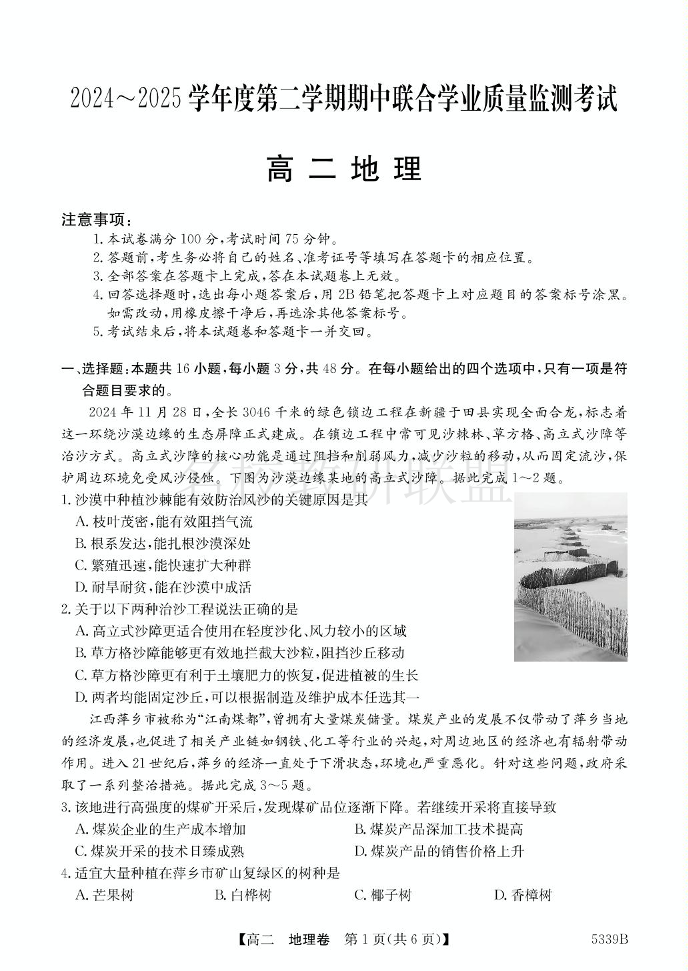 广东省清远市三校2024-2025学年高二下学期期中联考试题 地理试题(含答案).pdf
