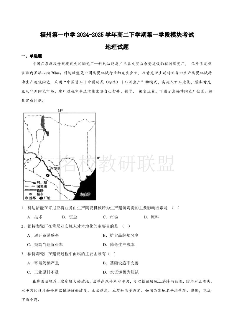 福建省福州第一中学2024-2025学年高二下学期期中考试 地理(含答案).pdf