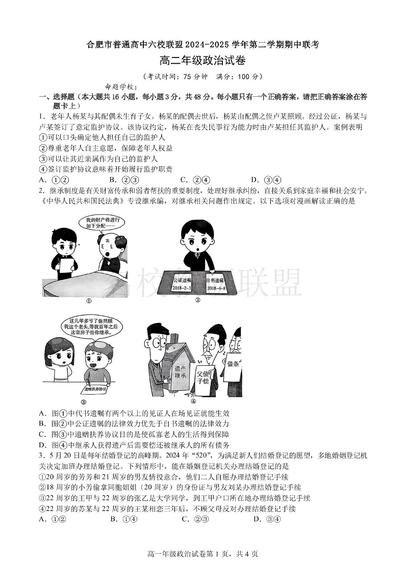 安徽省合肥市普通高中六校联盟2024-2025学年高二下学期4月期中考试 政治(含答案).pdf