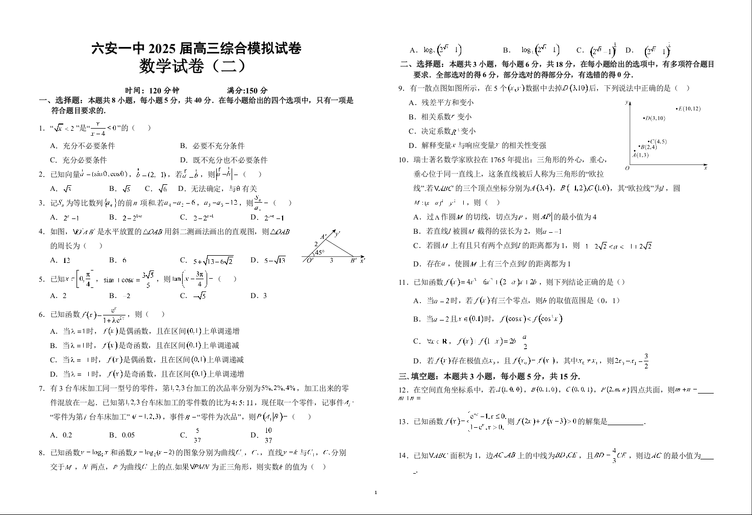 安徽省六安第一中学2025届高三下学期模拟预测(二)数学(含答案).docx
