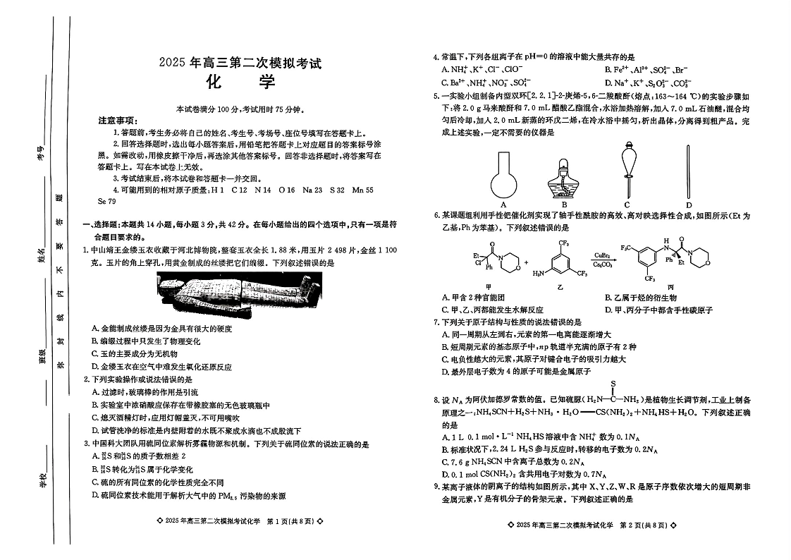 河北省邢台市五县一中2025届高三下学期第二次模拟考试 化学(含答案).pdf