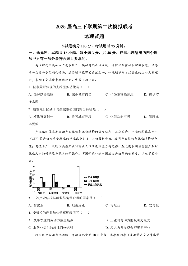 河北省邢台市五县一中2025届高三下学期第二次模拟考试 地理(含答案).docx