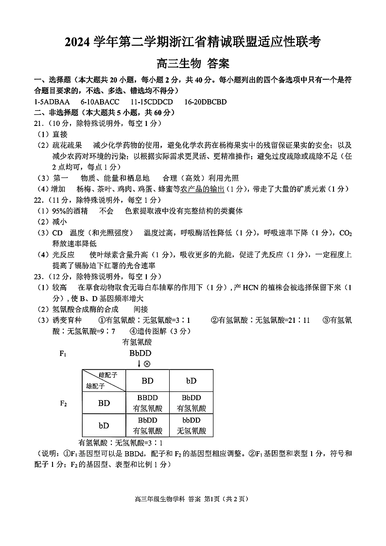 浙江省精诚联盟2025年5月高三适应性联考 生物答案.pdf