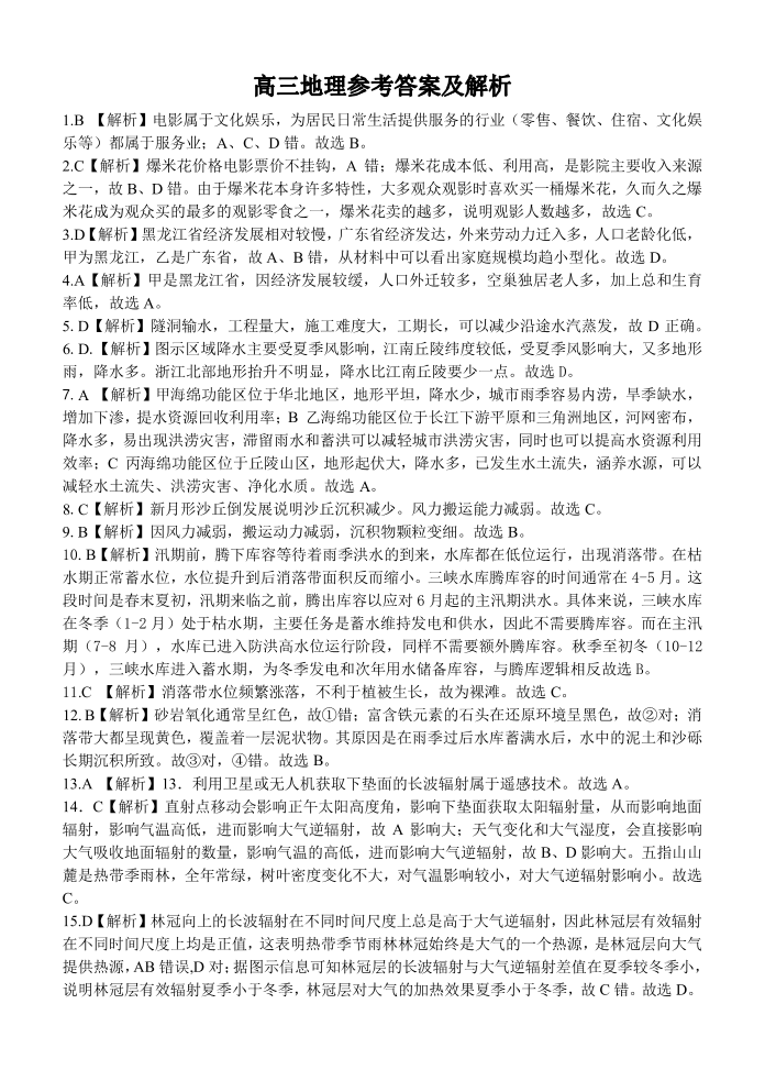 浙江省精诚联盟2025年5月高三适应性联考 地理答案.pdf
