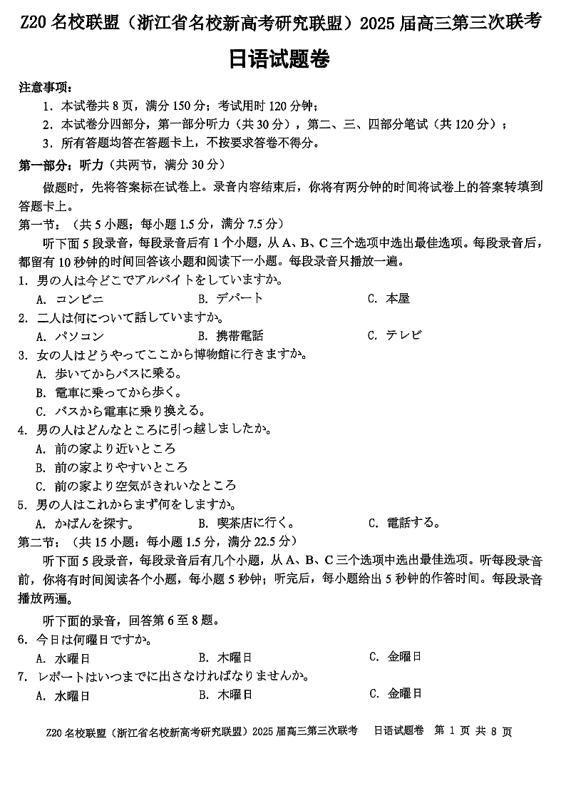 浙江Z20名校联盟2025届高三第三次联考-日语.pdf