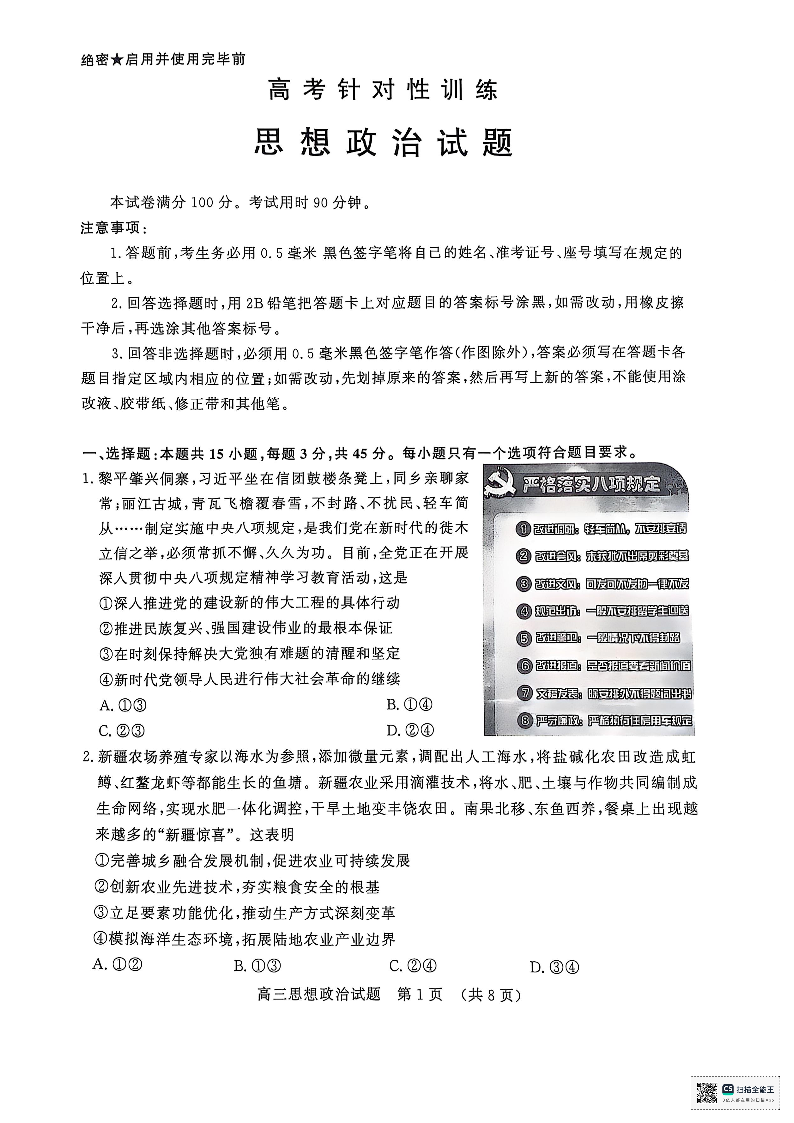 山东省济南市2025年5月高考针对性训练 政治.pdf