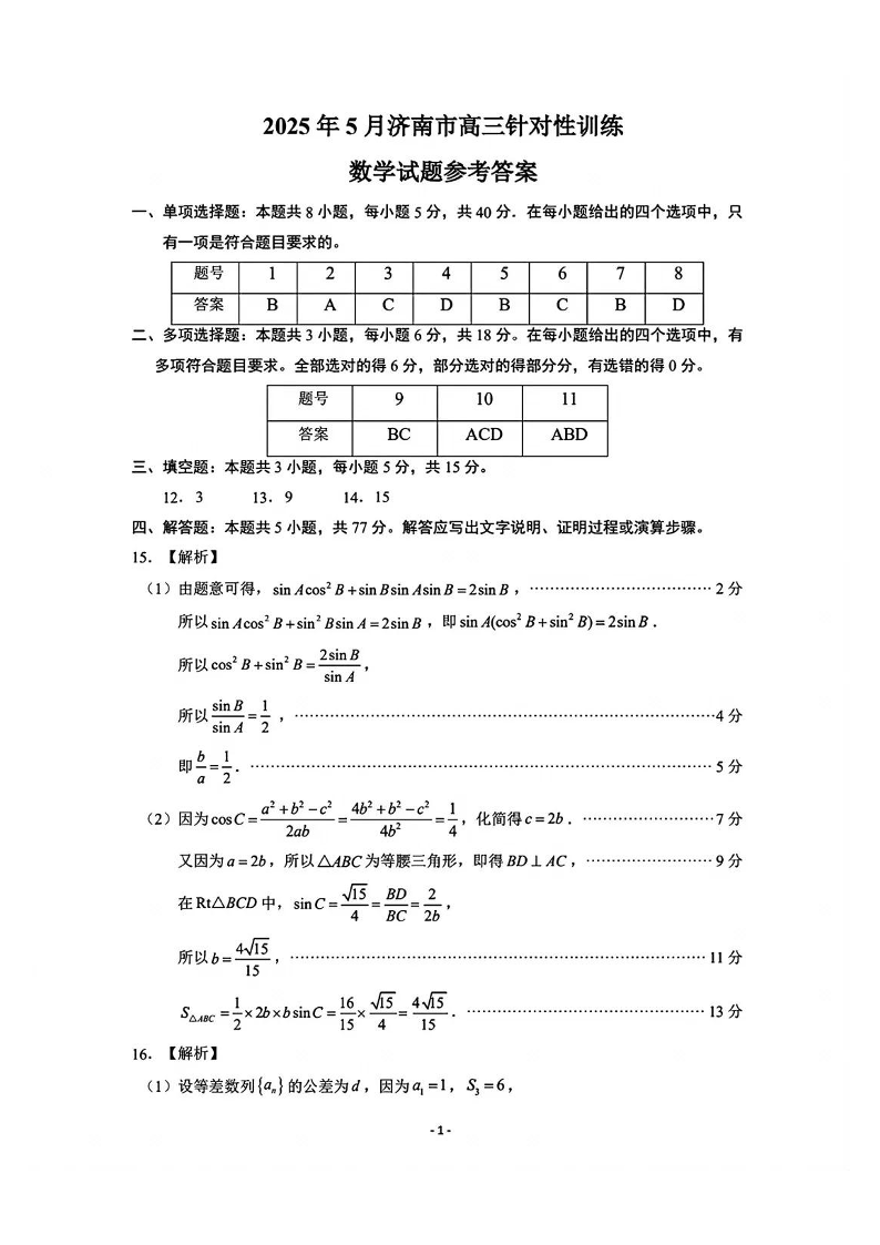 山东省济南市2025年5月高考针对性训练 数学答案.pdf