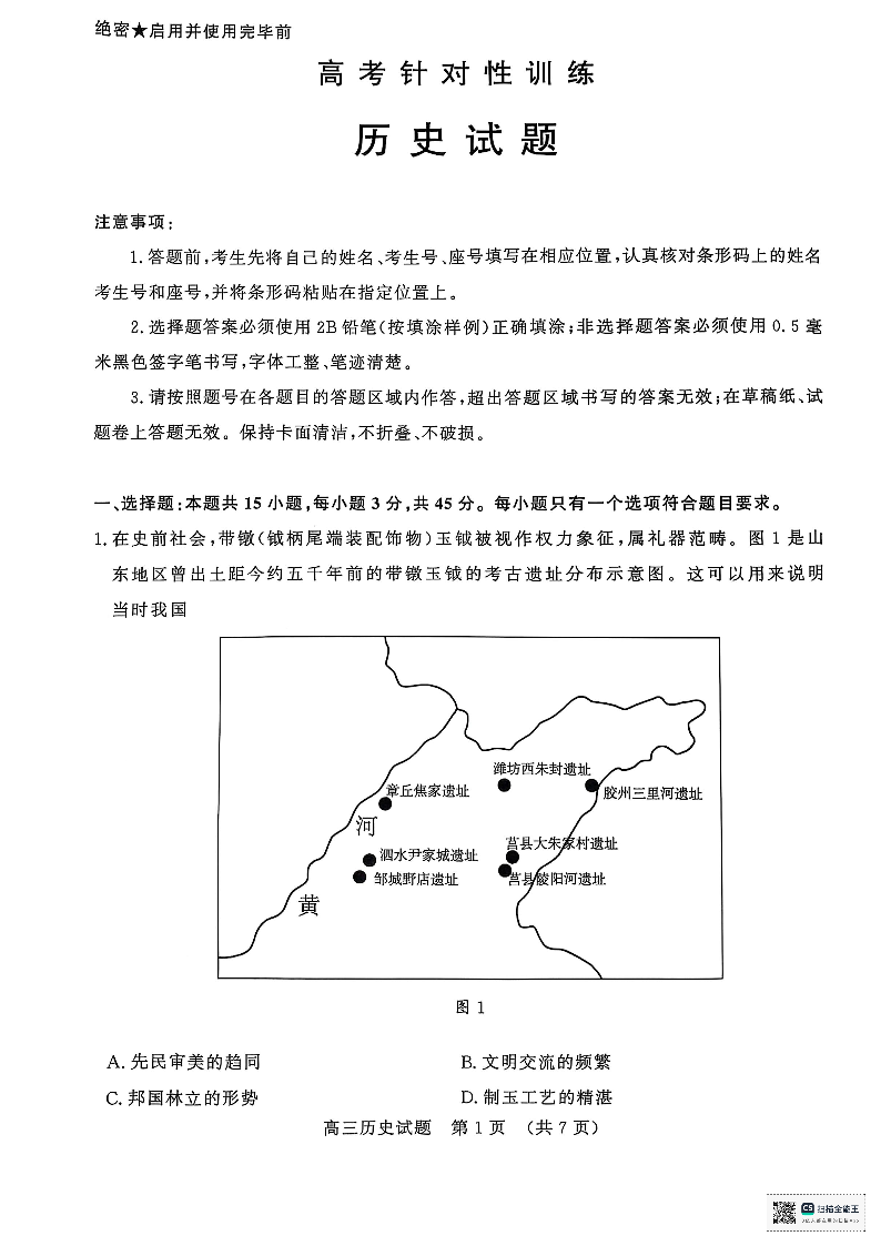 山东省济南市2025年5月高考针对性训练 历史.pdf