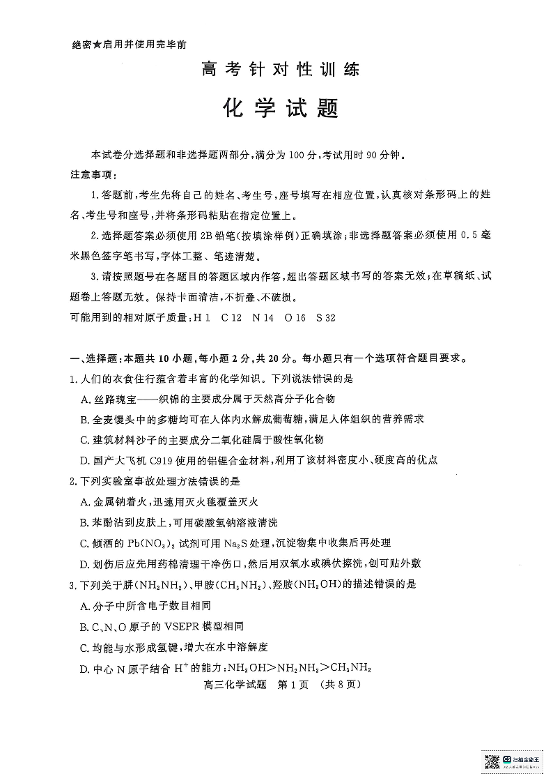 山东省济南市2025年5月高考针对性训练 化学.pdf