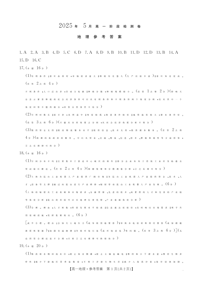 桂林2025年5月高一联考地理答案.pdf