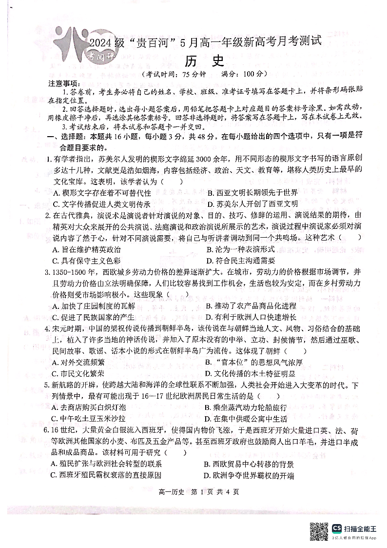 贵百河2025-05月考高一历史试卷.pdf