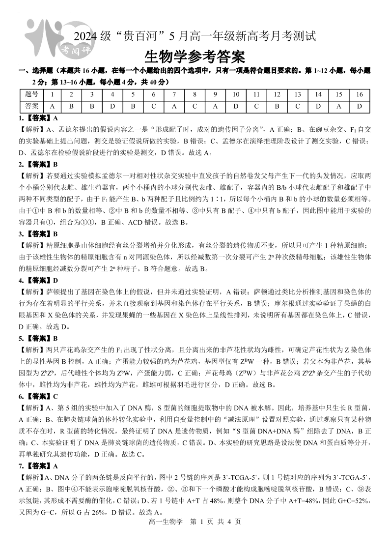 贵百河2025-05月考高一生物答案.pdf