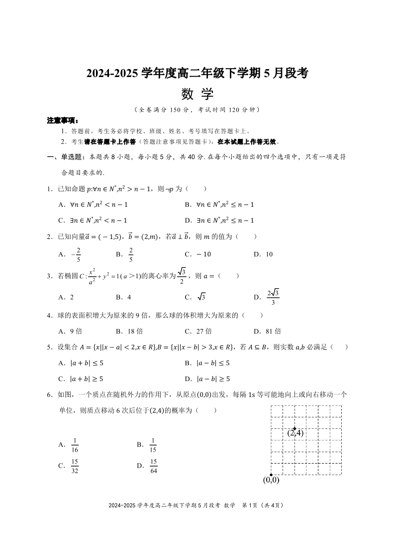 梧州2025年5月春季期中高二数学试卷.pdf