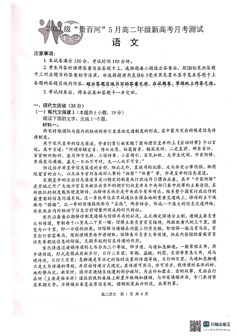 贵百河2025-05月考高二语文试卷.pdf