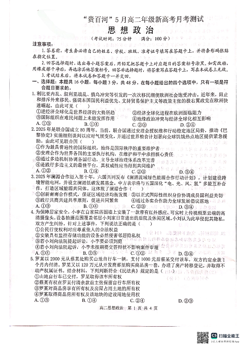 贵百河2025-05月考高二政治试卷.pdf