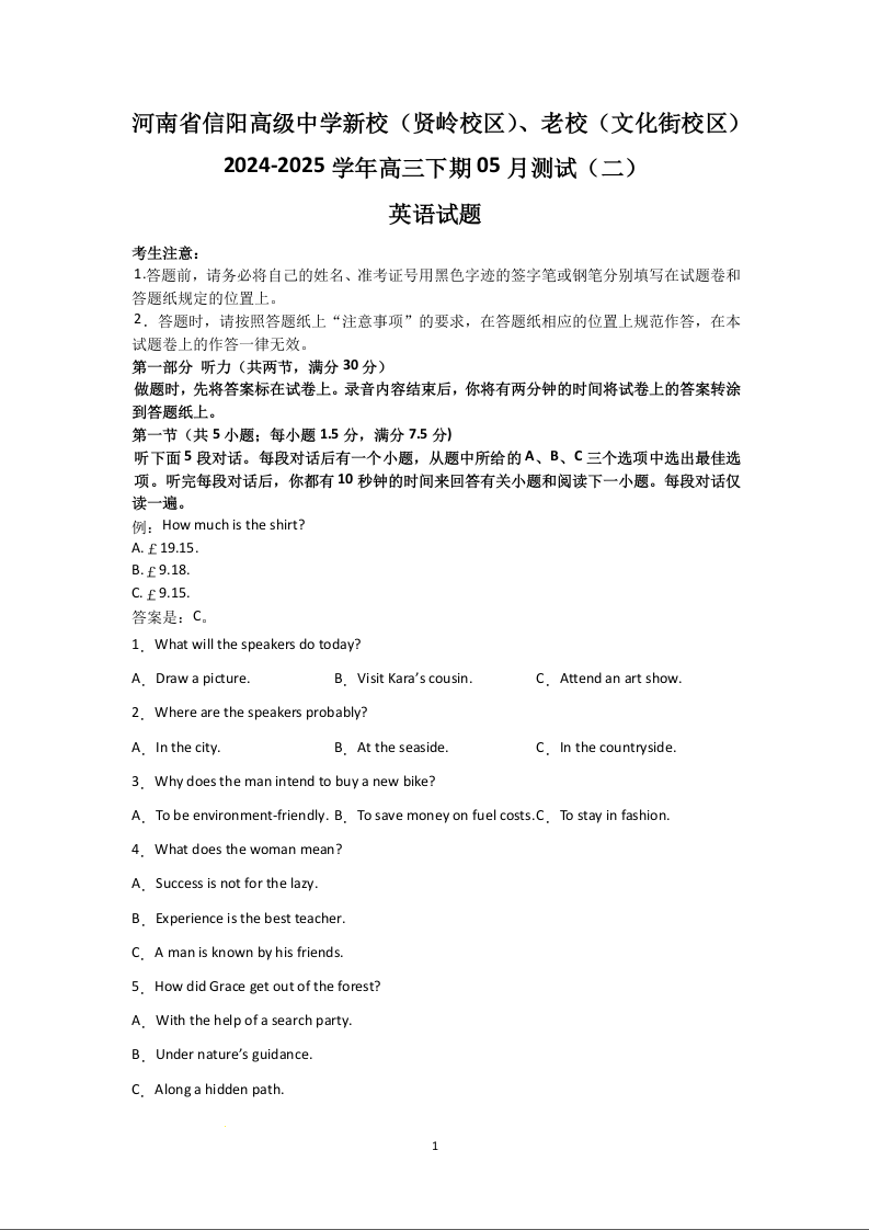 河南省信阳高级中学2025届高三下学期5月测试(二)英语.docx